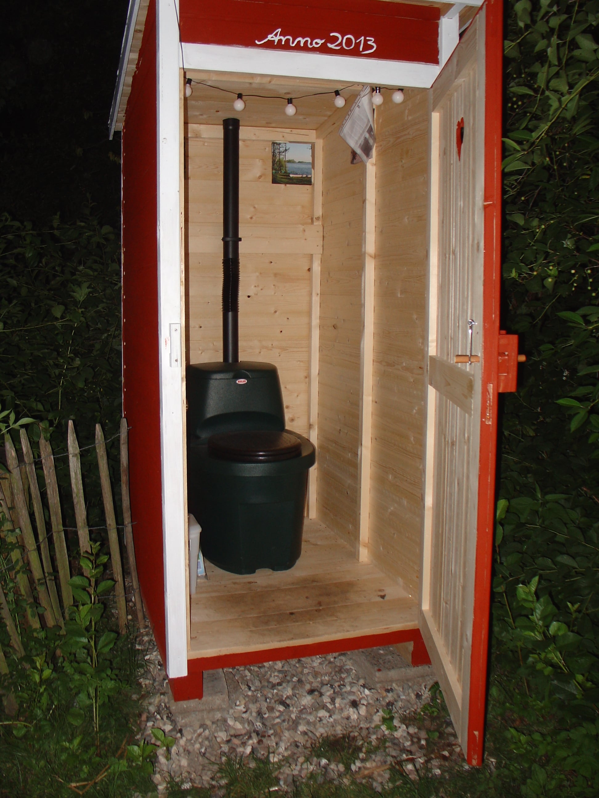 - Toilette mit Einstreubehälter, Thermositz und Ablaufrohr