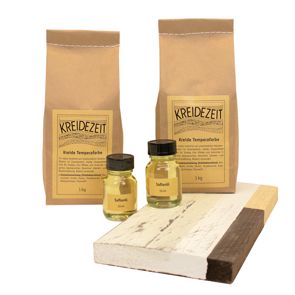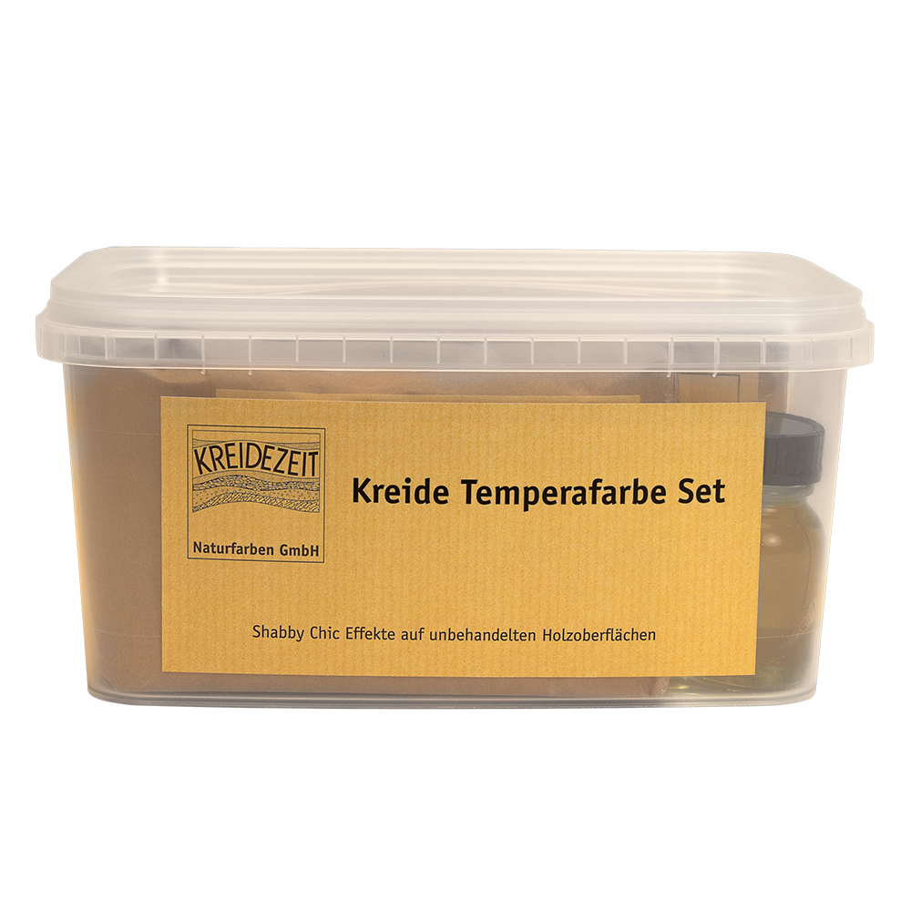 KREIDEZEIT Kreide Temperafarbe ist eine Kaseintempera. Kaseintempera eignet sich besser für Holzanstriche als reine Kaseinfarbe, da der Ölanteil die Haftung verbessert und vor allem die Farbe etwas flexibler macht, ähnlich wie ein Weichmacher. Eine gewisse Flexibilität ist bei Holzanstrichen wichtig, da Holz quillt und schwindet.