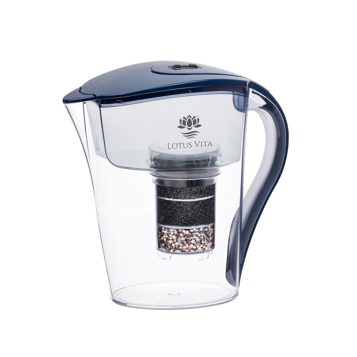 Die Filterkartusche im Herzen der Lotus FAMILY Filterkaraffe für Zuhause ist in drei Kammern aufgeteilt. Die erste Kammer enthält Hochleistungs-Aktivkohle (Iodin 1100) und Ionentauscher zur Reduktion von Kalk. Die zweite Kammer mit reiner Hochleistungs-Aktivkohle dient der Filterung jeglicher Schadstoffe. Die letzte Kammer enthält eine Zusammenstellung aus Magnesium, Kalzium, Turmalin, EM-Keramiken (EM= Effektive Mikroorganismen nach Prof. Higa), Quarzsand und Magnete – diese PiVitals-Technologie macht Ihr Wasser schmackhaft und bekömmlich.