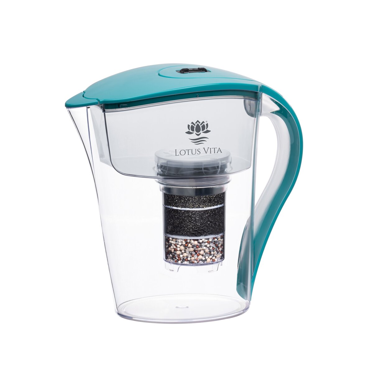 Die Filterkartusche im Herzen der Lotus FAMILY Filterkaraffe für Zuhause ist in drei Kammern aufgeteilt. Die erste Kammer enthält Hochleistungs-Aktivkohle (Iodin 1100) und Ionentauscher zur Reduktion von Kalk. Die zweite Kammer mit reiner Hochleistungs-Aktivkohle dient der Filterung jeglicher Schadstoffe. Die letzte Kammer enthält eine Zusammenstellung aus Magnesium, Kalzium, Turmalin, EM-Keramiken (EM= Effektive Mikroorganismen nach Prof. Higa), Quarzsand und Magnete – diese PiVitals-Technologie macht Ihr Wasser schmackhaft und bekömmlich.
