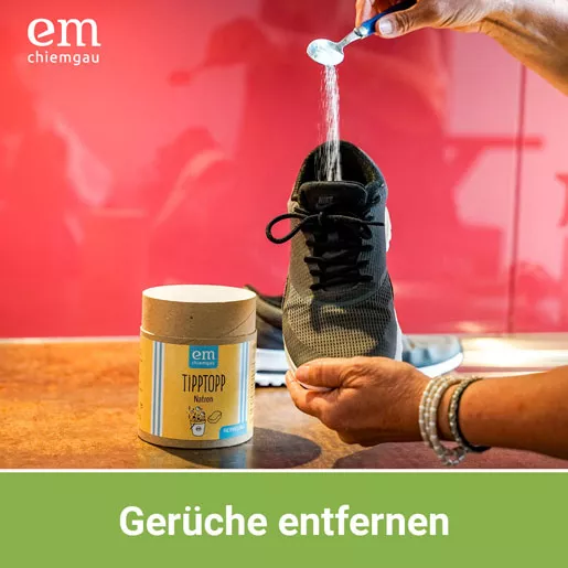 Gerüche in Schuhen: in den Schuh hineinstreuen, einwirken lassen, ausklopfen.