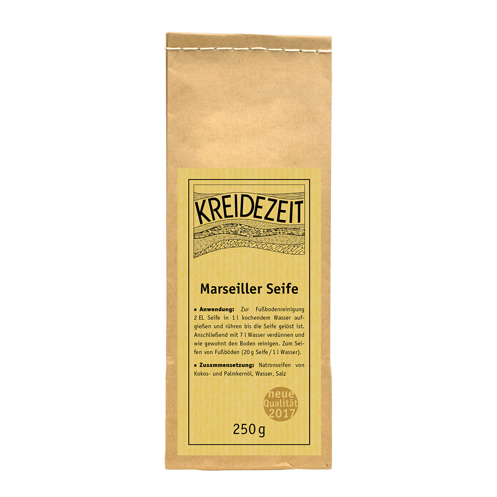 Natronseifen von Kokos- und Palmkernöl, Wasser, Salz