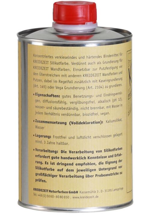 Vor der Verarbeitung ist Kaliwasserglas mindestens im Verhältnis 1:1 mit Wasser zu verdünnen. Stärkere Verdünnungen sind eventuell nötig. Produkt nicht unverdünnt verwenden !